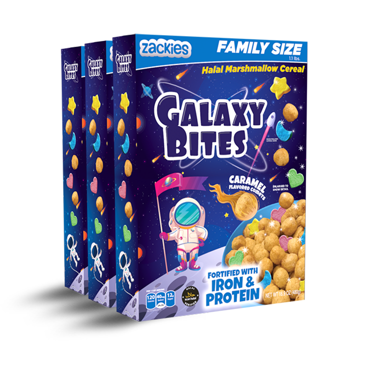 There have been many famous cereals throughout history, but few are as fun and tasty as this Galaxy Bites Cereal. Caramel Comets for a delicious combination of sweet flavors; dive into a bowl of caramel crunch and discover the taste of the galaxy with savory crunchy marshmallows.